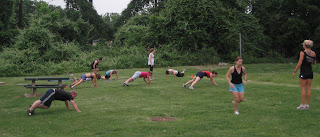 The 6:30 Deep Eddy Bootcamp is always taking it to the next level. Here they are doing plank walks across the feild followed by sprints....you gotta love Friday mornings!